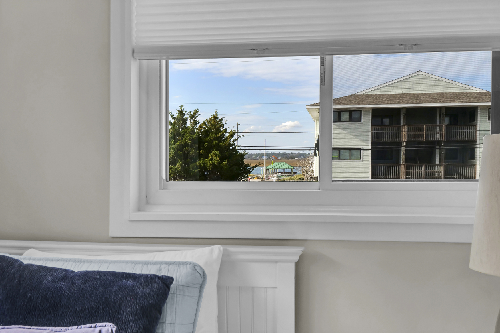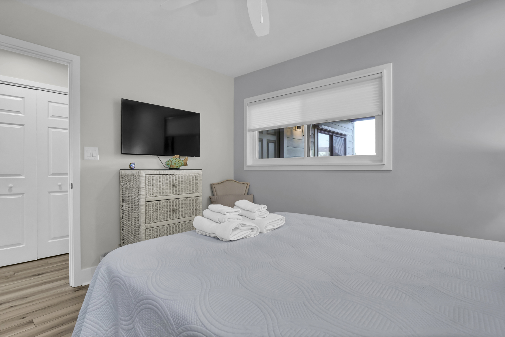 Bedroom with 2 twin beds, partial views of Banks Channel, and a smart TV.