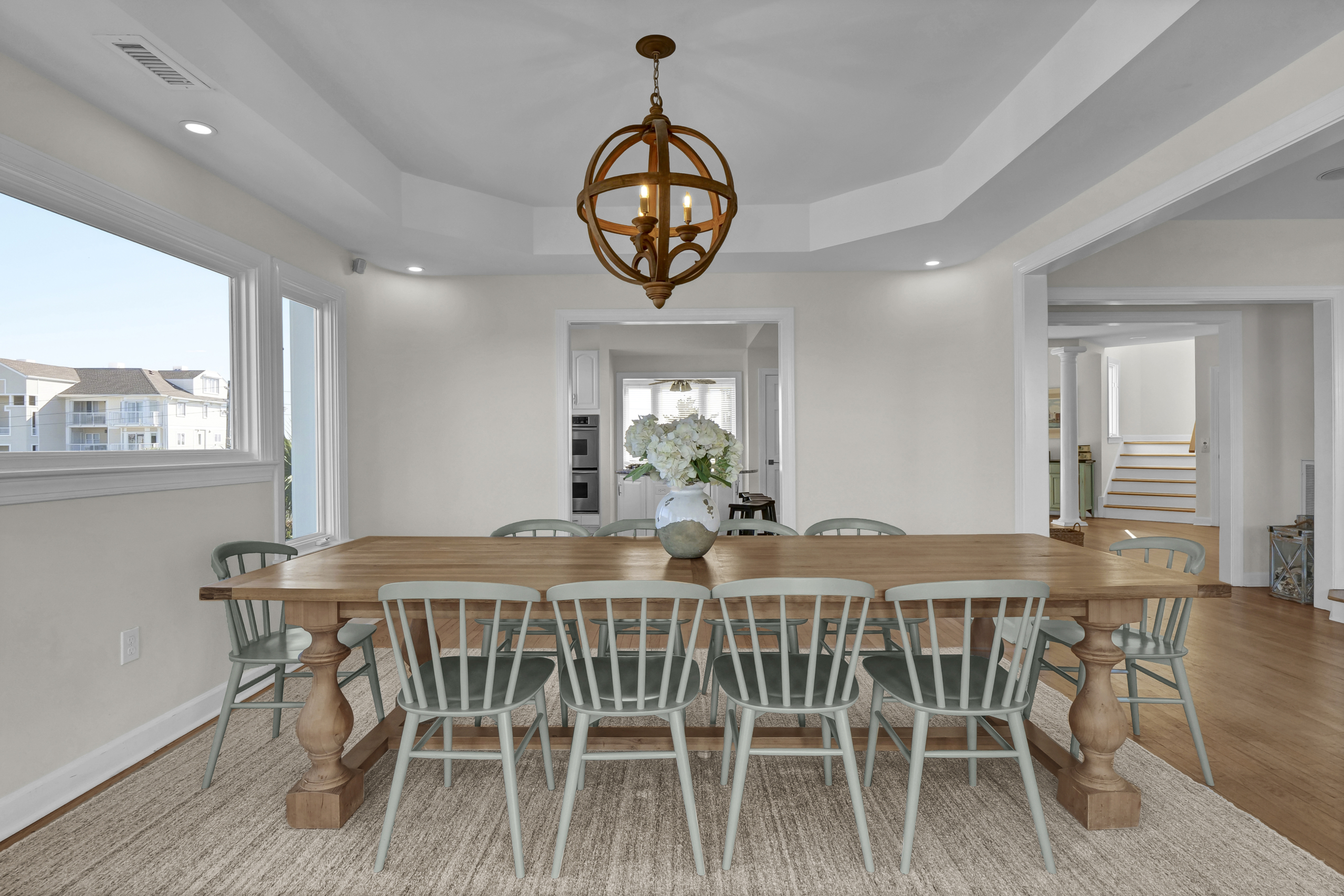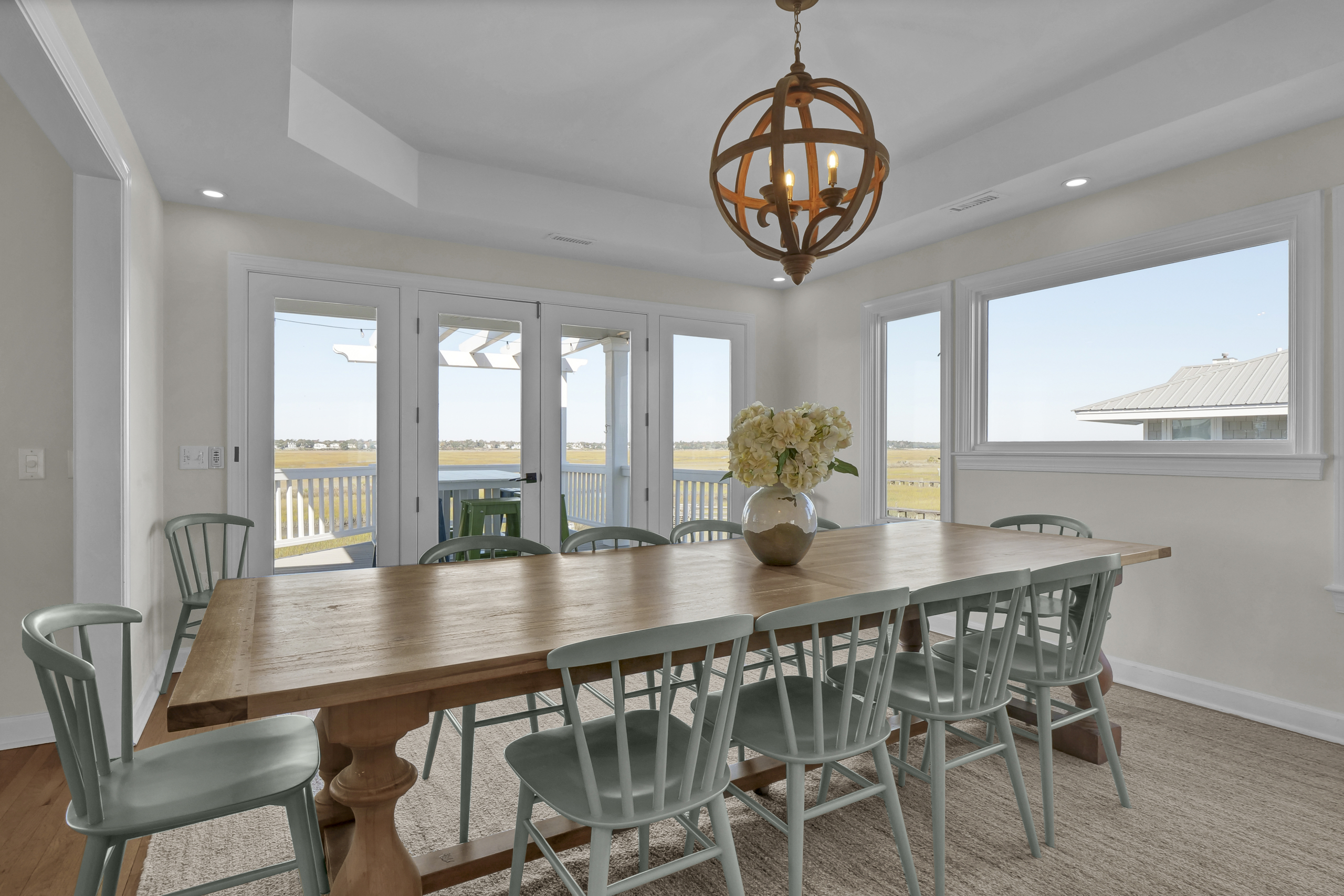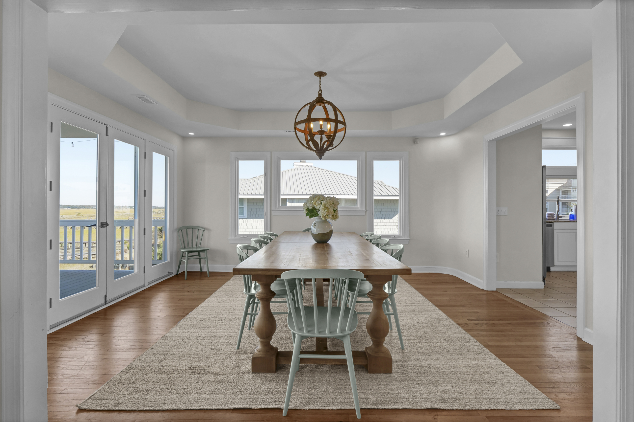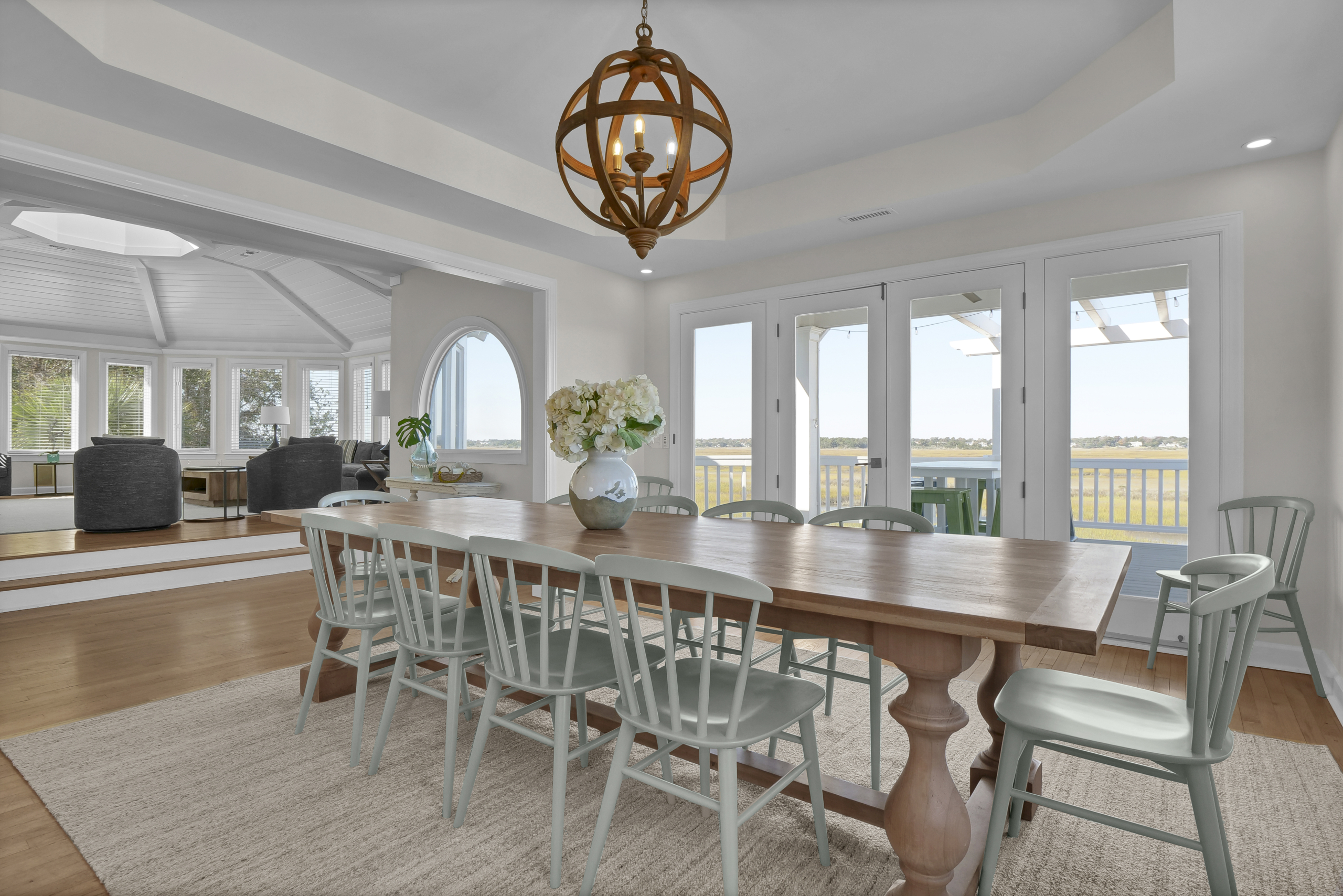 Attached to the kitchen is the dining room that looks over the Intracoastal water and has an attached porch with a sitting area