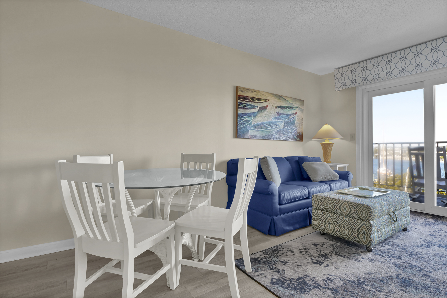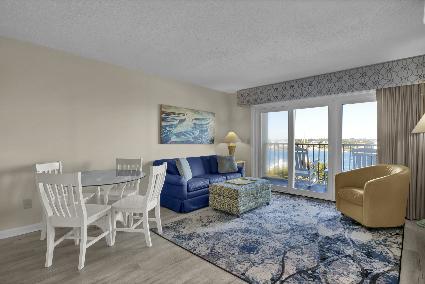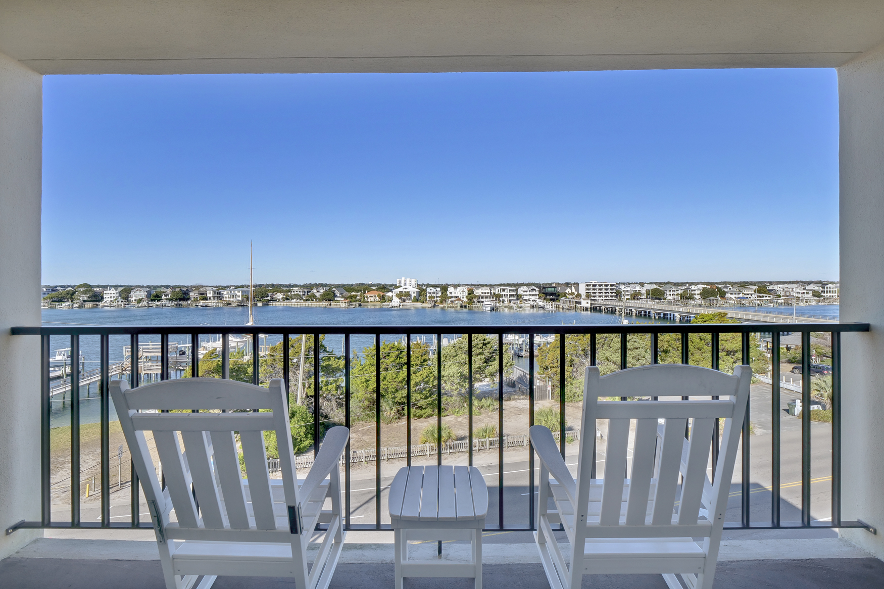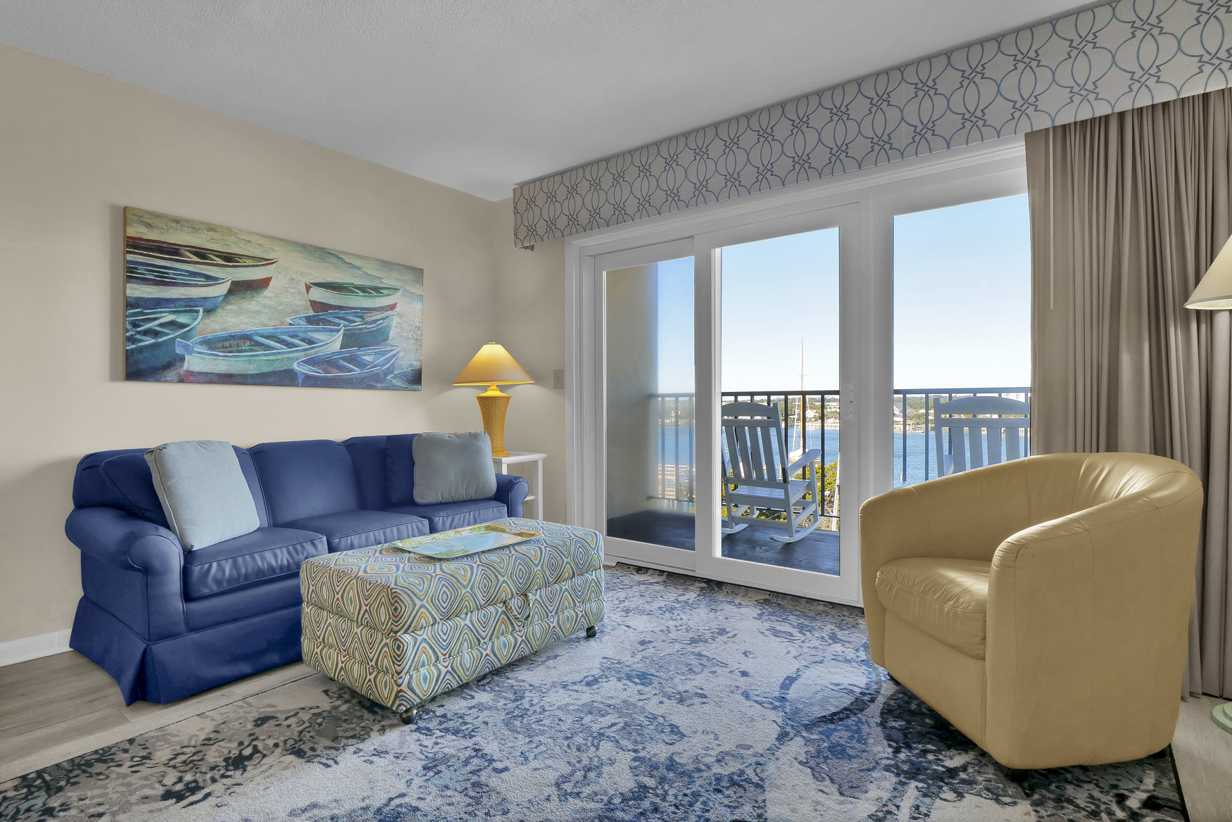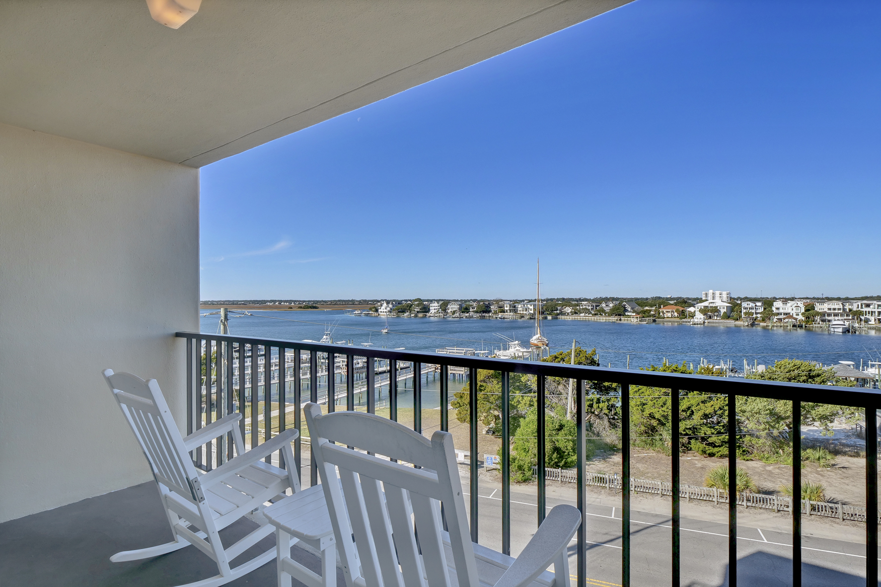 Hey, beach bums and wave riders! Chill out in your coastal escape, where the relaxed beach vibe flows into modern comfort. Located on the fourth floor with a private balcony overlooking the harbor, this spot is perfect for unwinding after a day in the sun.