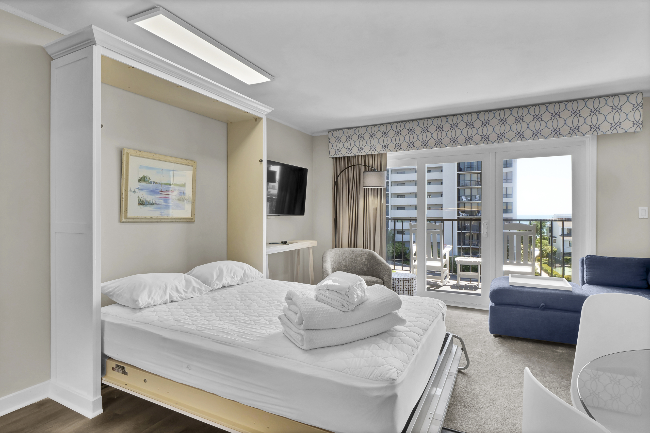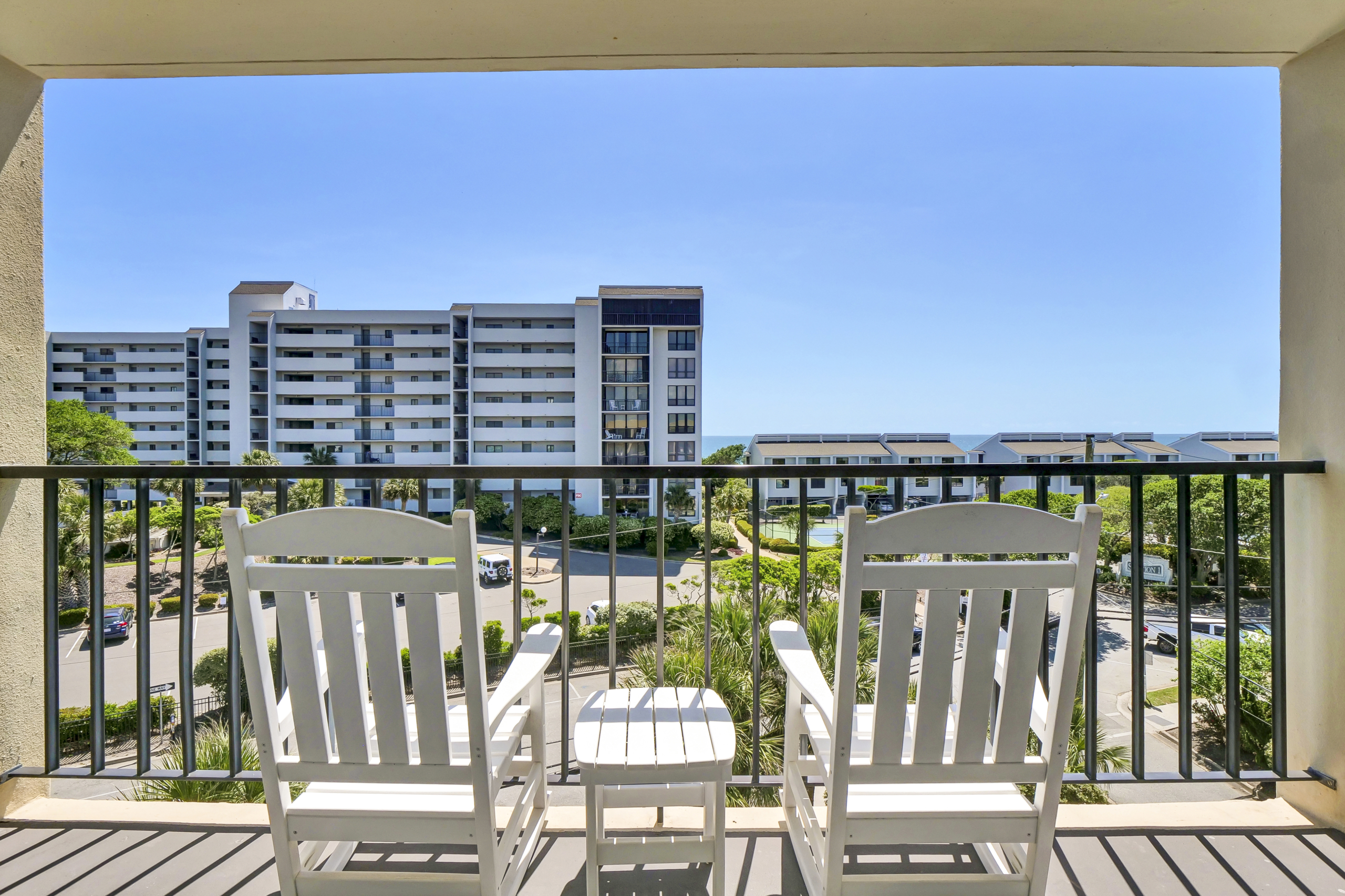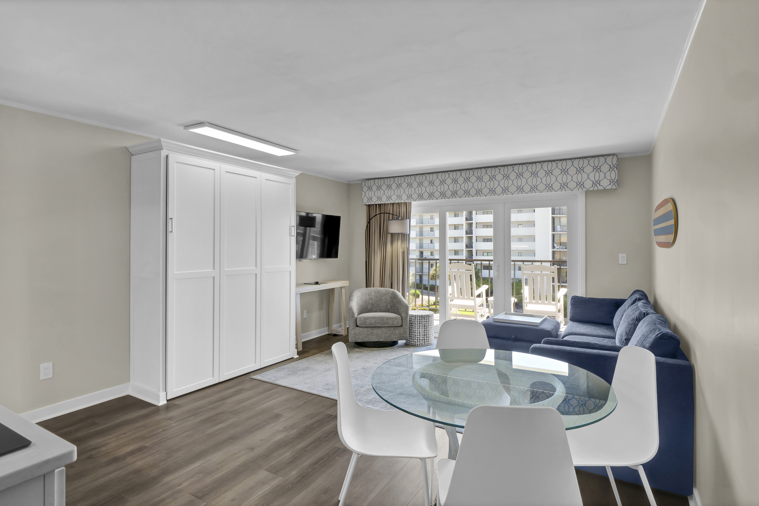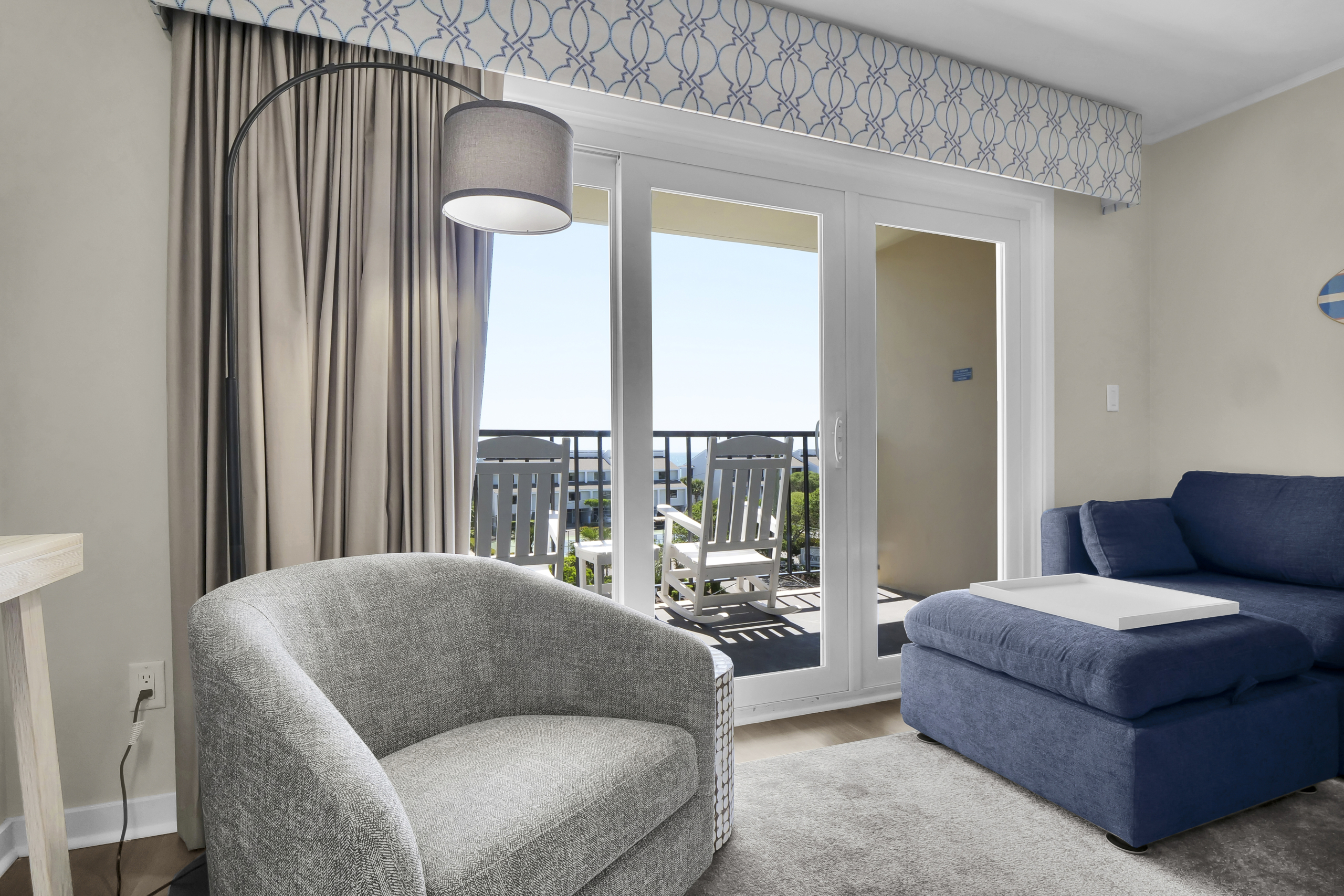 Hey, beach bums and wave riders! Chill out in your coastal escape, where the relaxed beach vibe flows into modern comfort. Located on the fourth floor with a private balcony overlooking the pool, this spot is perfect for unwinding after a day in the sun.