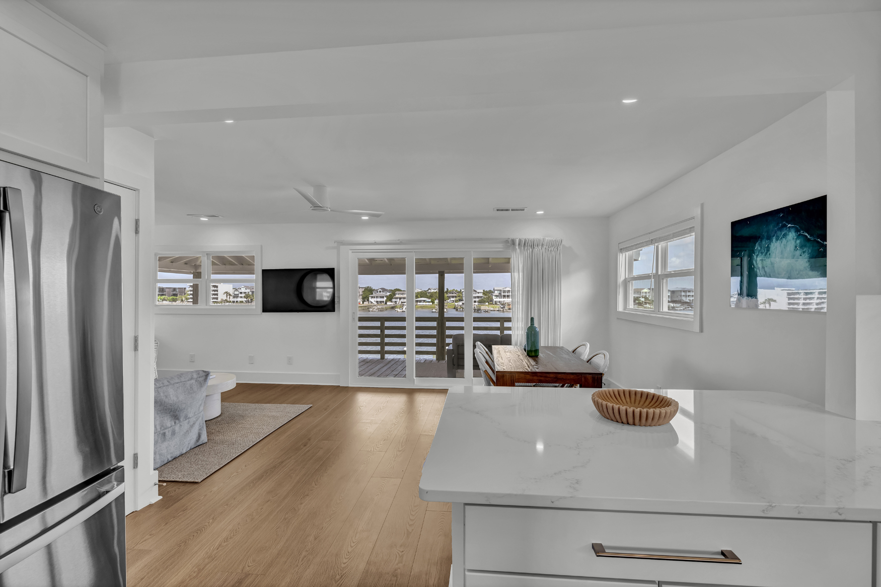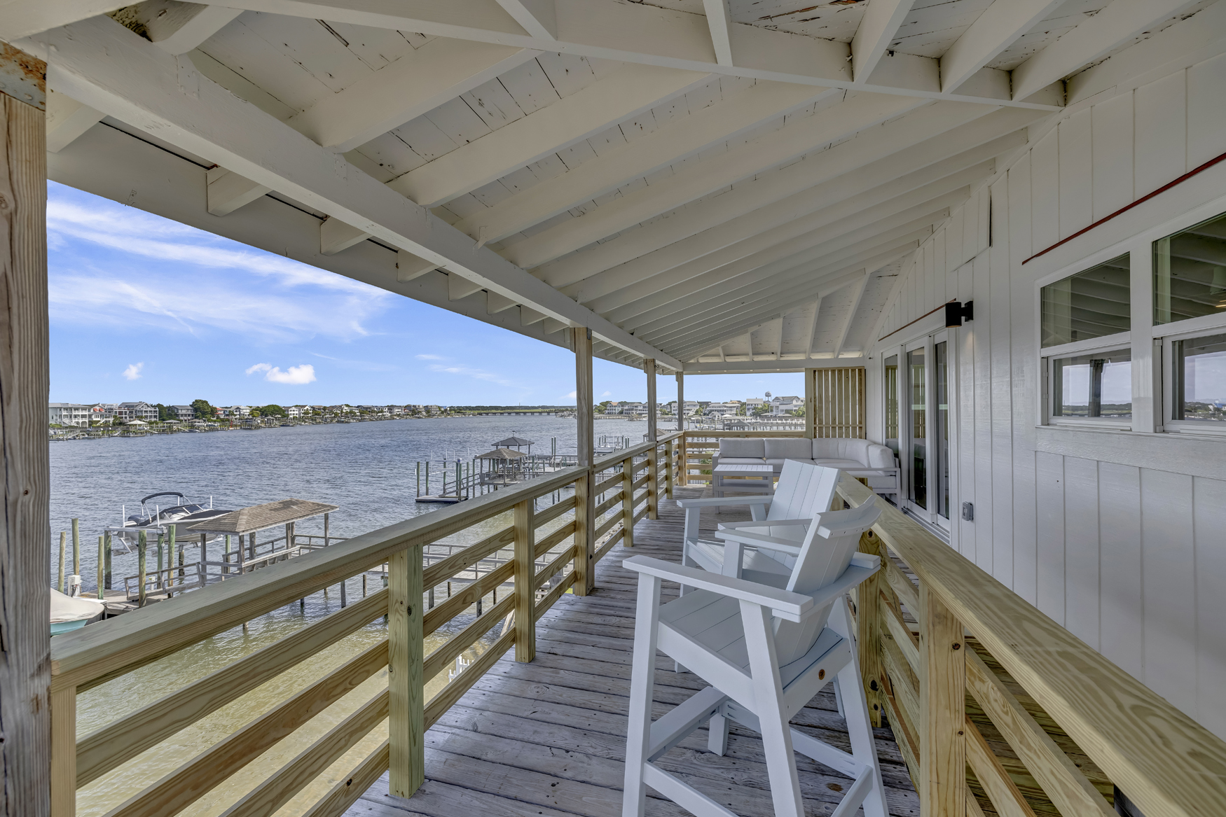 Escape to this newly renovated, top level waterfront condo in Wrightsville Beach! Perfect for families or friends, enjoy direct access to Banks Channel to the shared boat dock and explore the islands! Just a quick distance to the beach and Wrightsville’s main strip with bars, shops, and dining. Sleeps 6 with modern coastal decor, sound views, and a spacious deck—ideal for your next family vacation or relaxing beach getaway.
